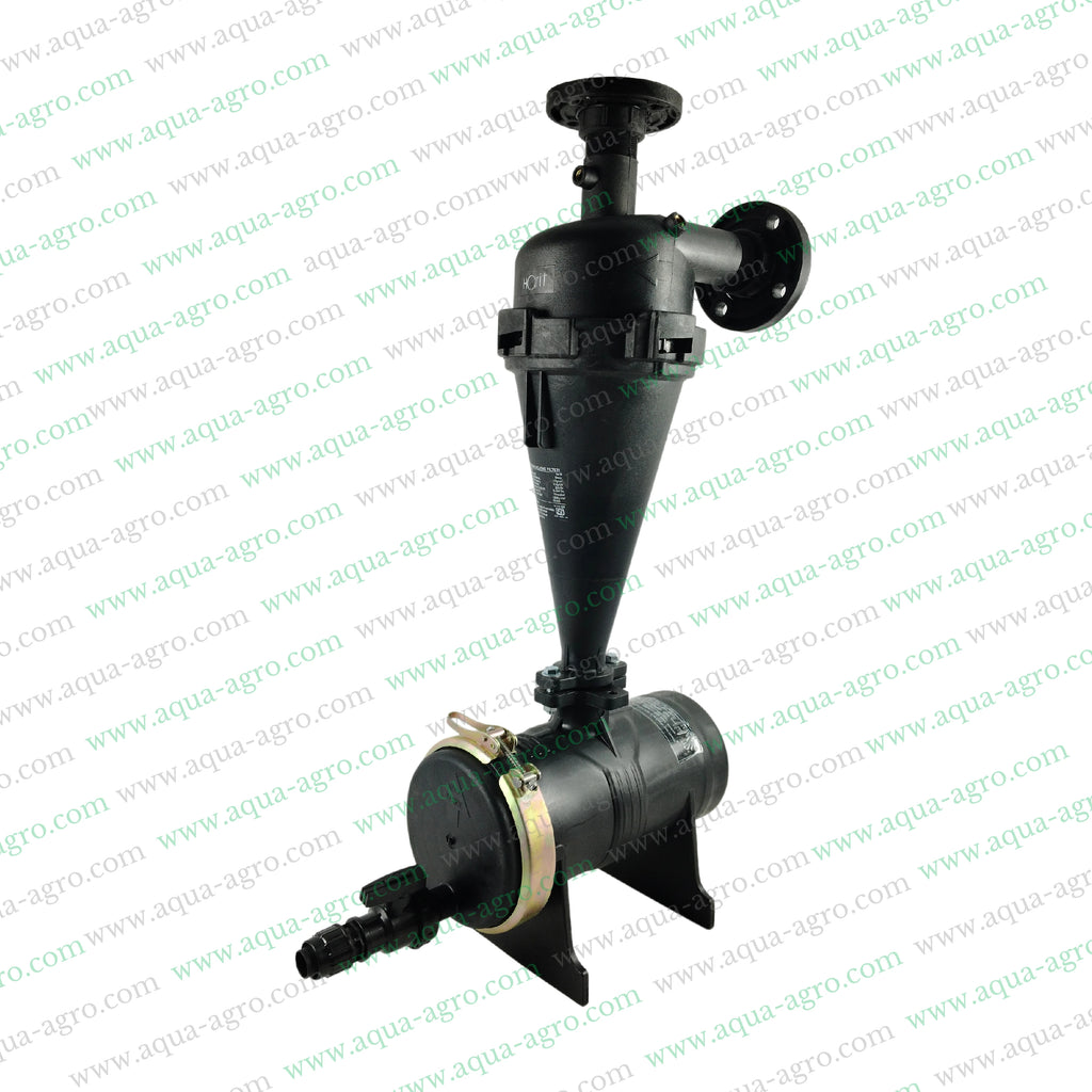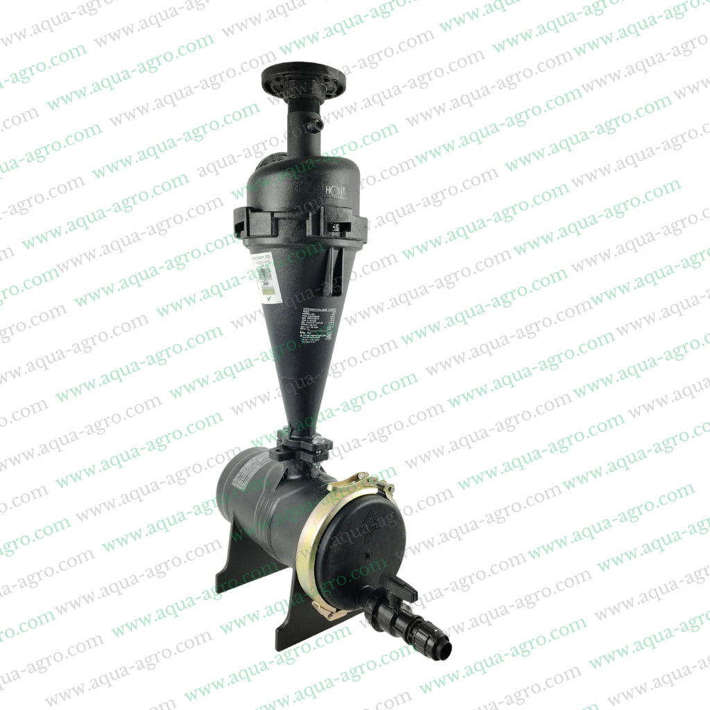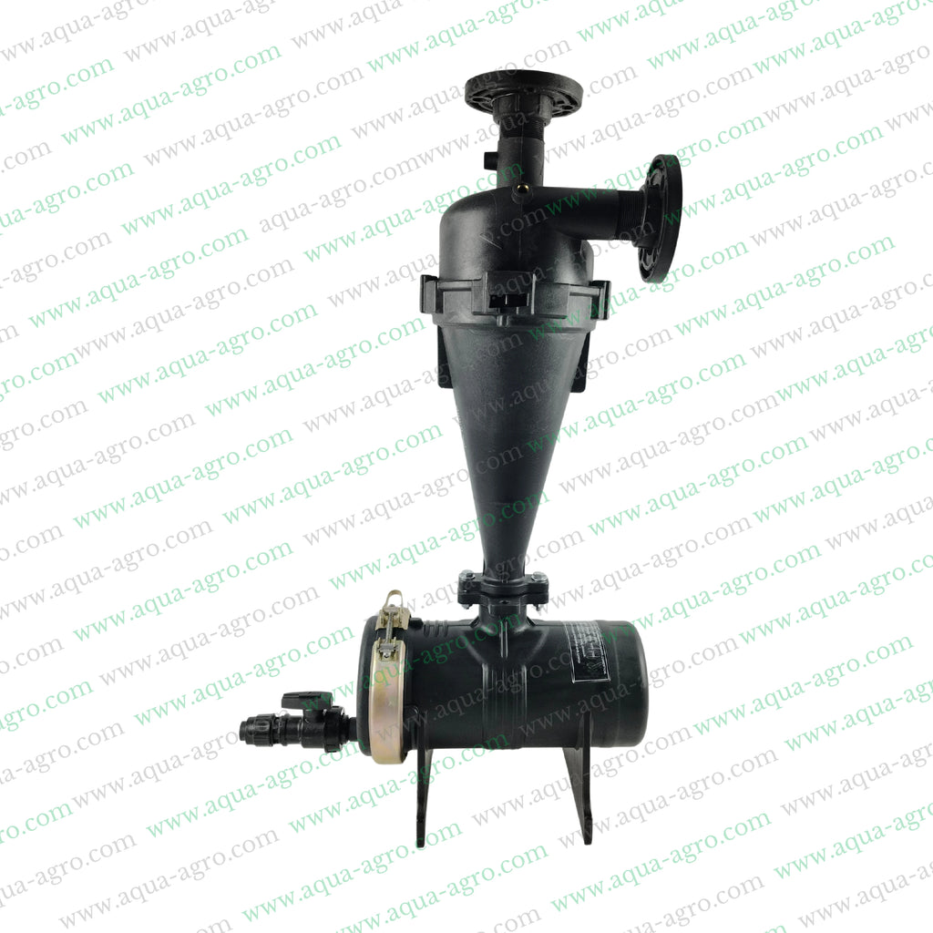 The AUTOMAT Hydrocyclone Filter provides efficient vortex filtration, handling up to 25 m3/hr of flow. With a durable plastic body and 120 micron filtration capability, it's perfect for taking on any challenge. Available in bold black, it's ready to take on your toughest filtration needs!